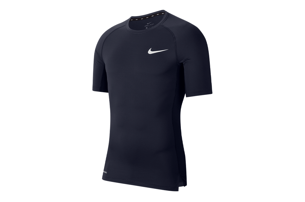 Спортивная футболка от бренда Nike идеально подходит для интенсивных кардио и силовых тренировок. Футболка с плотной посадкой повторяет изгибы тела, подчеркивает фигуру и не сковывает движения во время тренировок. Благодаря чему, футболку можно использовать в качестве дополнительного нижнего слоя вместе с тренировочной толстовкой. Модель выполнена в темно-синей расцветке, которая легко сочетается с любыми вариантами низа и подходит каждому мужчине. Основная ткань с технологией Dri-FIT отводит излишки влаги от кожи, сохраняя ее сухой. Перфорированные вставки по бокам обеспечивают дополнительный воздухообмен. Плоские швы сводят к минимуму раздражение, вызываемое трением при беге или выполнении упражнений. Футболка хорошо тянется и не теряет форму после стирки. Контрастный логотип бренда на груди завершает фирменный дизайн. В такой футболке вы сможете тренироваться и покорять новые вершины с ощущением легкости и комфорта.Особенности и преимущества: